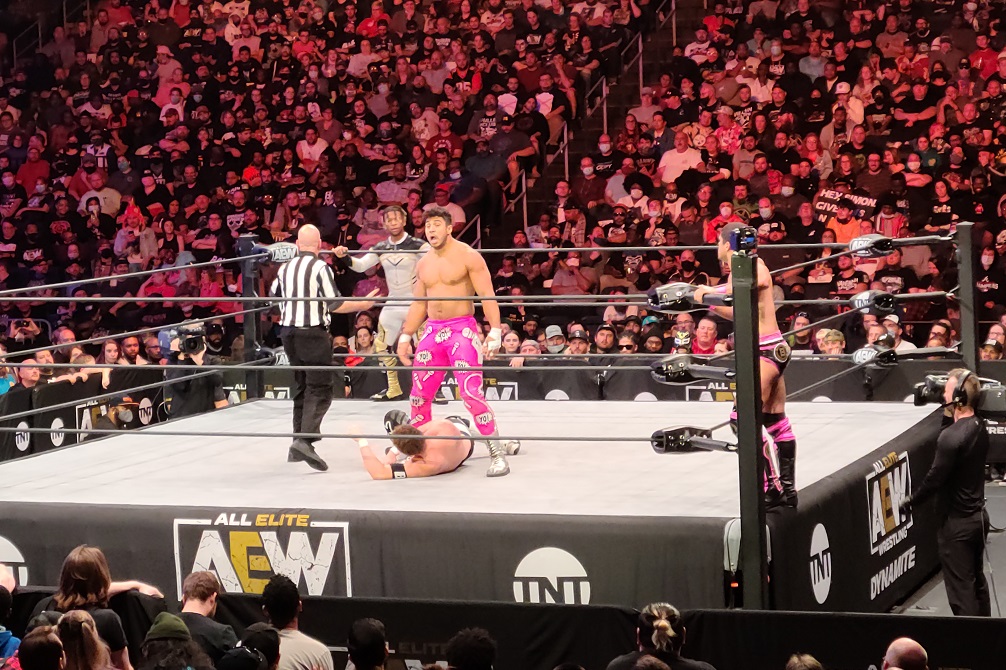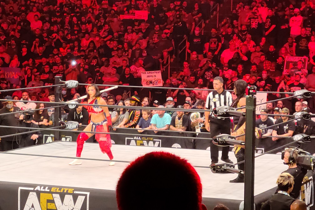 The show started with Dark Elevation which I’ve always kind of dismissed as an extraneous thing from AEW, but it was great to see it live! I can’t possibly fit that show into everything else I watch and frankly, I don’t know how interested I’d be in seeing those matches on my computer. For a live event though, it’s a great way to see stars who otherwise don’t have much of a role to play in the storylines on Dynamite and Rampage. If it wasn’t for those matches at the start of the show, I wouldn’t have been able to see John Silver, Alex Reynolds, and Preston Vance wrestle, I wouldn’t have seen Riho who came out for a match to the utter delight of the crowd, and I even got to see Penelope Ford! I’ve always been a fan of hers, but she’s not doing much on the main show right now and could have easily been absent, but because of that hour of matches they did before the TV broadcast, I got to check that off my wrestling bucket list! Still, as much fun as the show was for me, we’re here to talk about the important angles and the quality of the matches, so let’s not waste any more time and dive right in!