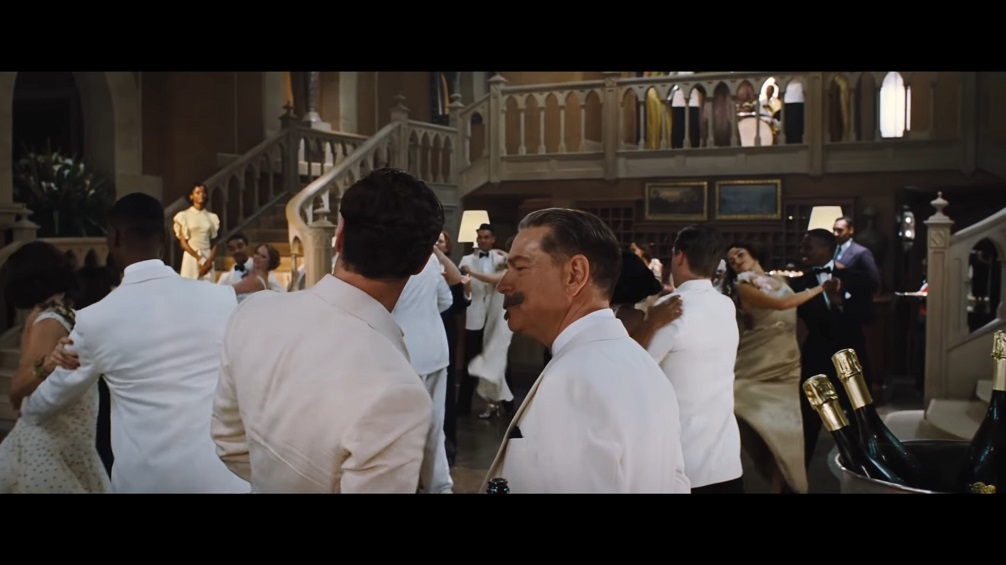 The movie certainly doesn’t make the best case for itself from the outset as the pacing feels languid and the plot is all over the place. We’ve got a flashback followed by a time skip within the first twenty minutes of the movie, and the scene at the reception where we get introduced to all the characters lacks all subtlety to try and cram as much detail as possible. Bouc once again serves as something of a tour guide as he walks Poirot and the audience through the cast of characters with such specific detail that they might as well throw title cards under them like they’re the newest members of the Suicide Squad. The whole first act is noticeably inorganic and stretched out compared to the original as anything that that film did once to set up a clue or a character is done at least three times here, and I was left feeling very unsure of how the movie would turn out. Still, the performances manage to keep things afloat as everyone delivers their lines with the appropriate amount of gusto, and even if the effects look a bit janky at times the overall look and feel were very pleasing to the eye. Even if the movie is taking way too long to get the action, as it were, Branagh at least has an eye for this kind of pulpy spectacle that runs throughout the entire movie.