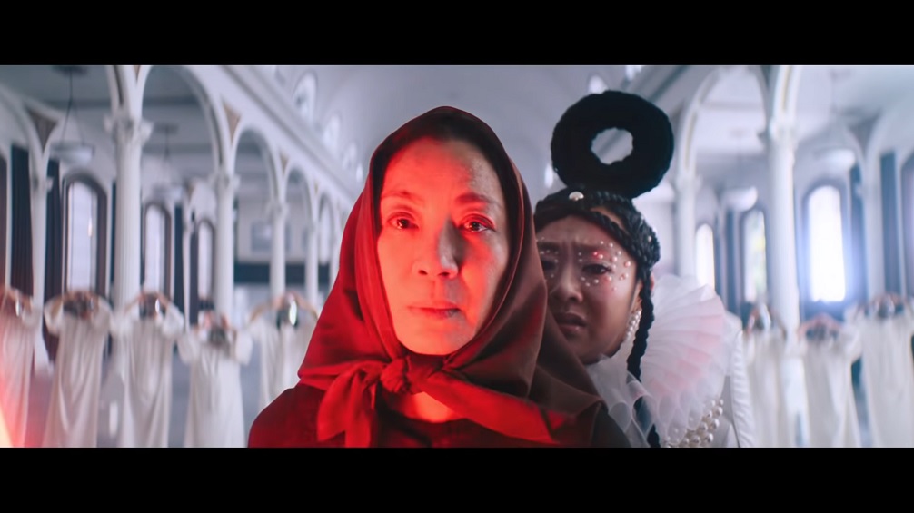 Evelyn Wang (Michelle Yeoh) is not very happy with her life. She runs a laundromat with her husband Waymond (Ke Huy Quan), her father (James Hong) has health issues and needs to be taken care of, and her daughter Joy (Stephanie Hsu) is bugging her about something when all she wants to do is keep everything from falling into chaos. Throwing a wrench into her plan is the IRS who is auditing her business, and the agent assigned to her case (Jamie Lee Curtis) is not exactly the most amenable to her stressful situation. Sometimes you just have to wonder where things went wrong and if there’s a better version of you out there. Fortunately for Evelyn though, she gets an answer to that question when her husband starts acting very weird and tells her to wear these wireless earpieces that end up sending her to alternate dimensions. It turns out that Evelyn may just be the key to solving some sort of inter-dimensional timey-wimey nonsense and that her husband is being controlled by a parallel version of him from the Alpha-verse that is able to hop dimensions and is searching for a way to stop a terrible threat that is about to shatter all of existence. Sort of a lot to drop on someone already struggling to make it through the day, but when the alternative is talking to someone at the IRS, it’s pretty easy to figure out which is the better option! Evelyn has to find the strength within her and put everything she holds dear on the line in order to save the future (or something like that), but can she juggle the problems of multiple versions of her life when she’s struggling just to deal with the one she’s got? What is this all-powerful threat that Evelyn needs to face, and is Alpha Waymond keeping some very important secrets from her? Can you apply deductions from businesses in an alternate reality, or do you need separate filings for each parallel universe?