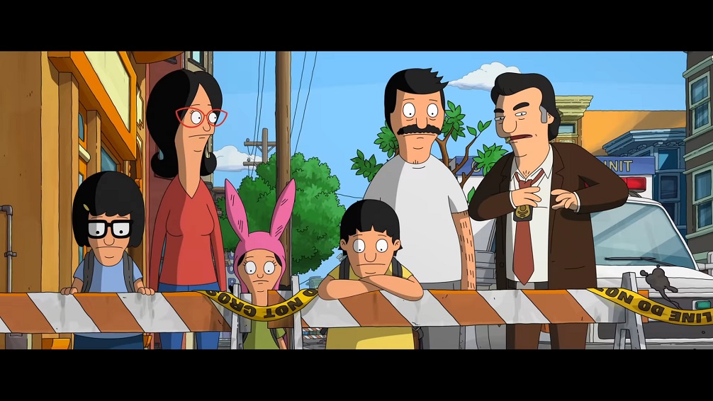 Where the movie really falters is the plot itself. The murder mystery could have been the thing that sets this apart from the show, a genuine sense of danger or clever intrigue against the backdrop of Ocean Avenue, but instead, it’s overly convoluted and feels secondary to the usual Belcher antics. It’s not even particularly clever which is a shame given how strong the humor is written, and if you don’t guess who the killer is before a body even turns up, then you’re probably not paying attention. It’s also skewed quite heavily towards Louise which leaves Gene and Tina as tagalongs with very minor story arcs. It’s a bit of a shame, especially with Tina being a fan favorite, but even with the longer running time you can only do so much, and Louise’s story is strong enough that I wouldn’t want them to try and cut it down to make room for other characters. Then again, it’s not like the murder mystery was much to write home about so perhaps we could have made a few cuts there. Since we’re on the subject, maybe we should try to answer the question that this movie couldn’t; namely, what could they have done to really sell this as a cinematic experience and not just a long episode of the show? What could they have given us here that they couldn’t do on TV already? Well South Park had a pretty easy job figuring that out since all they needed to do was pump up the raunchiness, but Bob Belcher isn’t about to throw out F-bombs, so you need something less obvious. The SpongeBob movies managed to knock out three decent pictures with road trips and mixed media, but even then there are plenty of episodes with them out of town and they even did that one episode with a bunch of different animation styles. Perhaps the show has been bold enough already that anything truly transgressive would slip too far outside of their target audience, but I still feel it was a waste to not make something bigger and better than the show we already get to see at home.