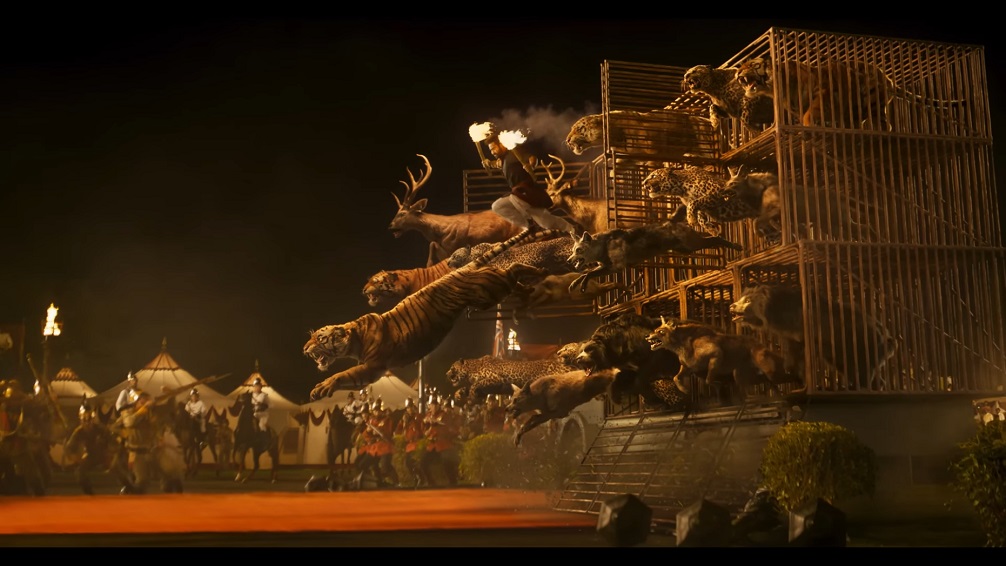 The action is the clear standout of the movie as I don’t think I’ve been this impressed with a movie’s action since 2011’s The Raid, and while I might give the edge to that in terms of its sheer brutality, there’s lighthearted exuberance here that is just unmatched by any other action film since perhaps the heyday of Jackie Chan. Then again, I’m not very familiar with Indian filmmaking so perhaps this is the norm and I’ve been looking in the wrong places for great action movies, but regardless, it’s a film that truly gets the fantastical nature of its own existence. It never concerns itself with realism when setting up its action scenes and the payoff is a movie full of delightful and unique set pieces that push the bounds of our imagination. It’s the kind of over-the-top frenetic action that Marvel never quite achieves despite having a better excuse to run wild with reckless abandon. Bheem and Raju may not be literal superheroes, at least not in the Western sense, but they are large than life characters that certainly straddle the line between peak human performance and straight-up deities. Bheem is perhaps most analogous to Paul Bunyan or John Henry if you’re looking for an American comparison; a great man seemingly birthed from the land itself in service of a greater purpose. His very first scene in the movie is the kind of over-the-top campfire story that starts a legend and it only gets more wild and outrageous from there with chase scenes, motorcycle jumps, dance numbers, and a confrontation between our two heroes that is sure to pull at the heartstrings of even the most hardened action film Connoisseur.