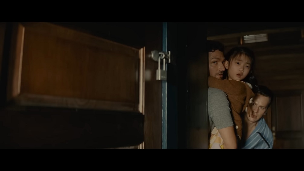 Eric and Andrew (Jonathan Groff and Ben Aldridge) are just trying to have a pleasant holiday with their daughter Wen (Kristen Cui), but things just can’t seem to go right! They have no cell service in their cabin, DoorDash isn’t willing to deliver this far out into the woods, and if that wasn’t bad enough, four religious fanatics with makeshift weapons and color-coordinated outfits have broken into their vacation home and tied them to a couple of chairs! The leader of the group is Leonard (Dave Bautista) who informs this unlucky family that the apocalypse is coming and there’s only one very arbitrary way to avoid it that no one here is going to like. The other three intruders, Sabrina, Adriane, and Redmond (Nikki Amuka-Bird, Abby Quinn, and Rupert Grint) plead their case as best as they can, but it’s certainly a hard sell and time is running out as the world seems to start crumbling around them. Will Eric, Andrew, and Wen be able to escape from their tormentors before they do something even more drastic? Is this just a simple case of mass hysteria as the four intruders see fate where there’s only coincidence, or is there more to the story than can be rationally understood? Seriously, what’s with the matching shirts? It’s not exactly something you’d do if you DIDN’T want to come off as complete weirdos!