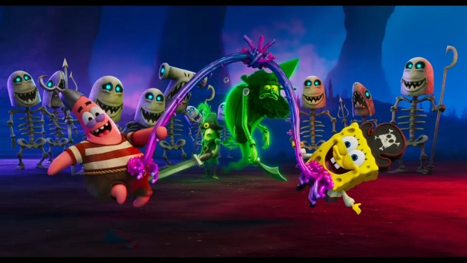 Am I too old for SpongeBob? Most definitely. I know what episodes I consider to be the best ones, and I haven’t really checked in since Sponge out of Water, so there’s certainly a bit of curmudgeonly bias going into this one which seems to be courting a new generation of Gen-A Sponge fans who don’t know their Nosferatus from their Hash Slinging Slashers. With that being said, and the massive grain of salt with which you should take this, I don’t think this movie lives up to the best of the series and frankly feels like a step back. It’s not terrible by any stretch, especially for the target audience, but it never rises above being average when SpongeBob at its best was genuinely engaging and hilariously subversive. The edges have been smoothed down considerably, both in terms of its storytelling and its flat, cookie-cutter art style.