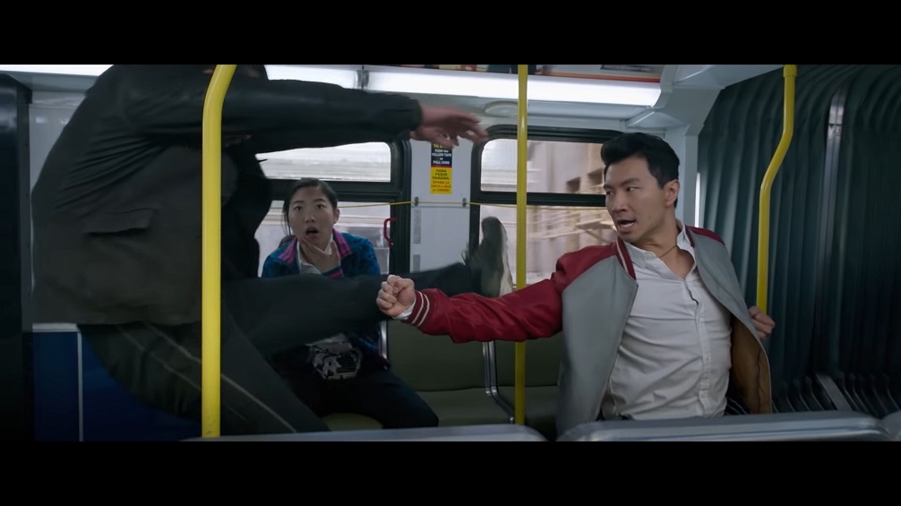 A long time ago in China, a warlord known as Xu Wenwu (Tony Leung) discovers ten magical rings that not only make him a badass warrior but also give him eternal life, so like any conquer with a lot of time on his hands he creates a secret organization of warriors who are always in the background of major global events and are consolidating more and more power. One particular power that Wenwu wishes to get control of is the magic found within the lost city of Ta Lo, and while he doesn’t manage to get through the door he DOES meet the bouncer who tells him to go away. Said bouncer is Ying Li who never allows Wenwu into the city but does fall in love with him and choses to leave it behind to be a part of his world and he, in turn, gives up the life of crime to raise a family. How did that all work out? Well we cut to twenty or so years later where Xu Shang-Chi (Simu Liu), the son of Wenwu and Li is living under an assumed name in San Francisco, so things may not have gone too well on that front. Mom is out of the picture, dad is back to his warlording ways, and his sister Xu Xialing (Meng’er Zhang) is off doing her own thing somewhere else. Shang-Chi is more than happy to while away his boring life with his best friend Katy (Awkwafina) but when a bunch of his dad’s thugs attack him on a bus and take the necklace his mother gave him, he knows that he can’t hide any longer and that his sister must be next since she also has a necklace from their mother. Can Shang-Chi and Katy protect his sister from whatever scheme his father is setting into motion and perhaps finally confront the problems that have torn this family apart? What happened in the intervening years that has scattered them across the globe, and does it have anything to do with what Wenwu is planning now? Seriously, why did he take Awkwafina along? Her quick wit and excellent sense of humor are always fun, but there are ninjas all over the place!