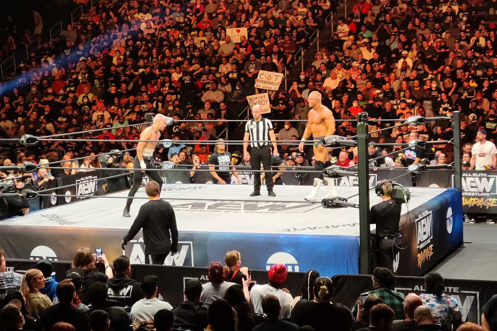 The episode begins with MJF and his cronies in The Pinnacle coming to the ring to celebrate his win last week against CM Punk. To say MJF is good at being a Heel is overwhelmingly redundant at this point, but he can still surprise you with how clever he can be in being a hateable tool. While everyone else comes down wearing suits and clutching drinks, he is carried out on a throne to an unimpressed and vocal crowd. After several minutes of milking his entrance, he finally starts talking about how he’s better than the best in the world and how the next step is obviously to crown him as AEW World Champion. Now I would have expected Adam Cole to come out since he made his intentions for the title clear on Rampage, but instead, it’s CM Punk who answers MJF’s tirade. Tony Schiavone is more than happy to meet him with a microphone, and Punk calls into question the win he had last week. More importantly though, he learned the lesson that no man is an island, and he brought some friends along to back him up this time; namely, Darby Allin and Sting who come out with baseball bats. Now this is where Punk gets clever, and this segment goes from good to great because he starts demanding a rematch… but NOT against MJF! Plot twist! He wants it against the person who was ACTUALLY responsible for his loss last week, namely Wardlow. This is brilliant because it’s an unexpected turn that puts The Pinnacle on their back foot while also hitting MJF right in his overinflated ego. In fact, it works so well that MJF proposes a different match and puts himself up as the prize; if Punk and a partner of his choosing can beat FTR tonight, then Punk can get a rematch against him. The catch is that Punk cannot choose Sting or Darby Allin as his partner; assuming of course that everyone in the back hates Punk as much as he does. Punk naturally accepts and leaves us in suspense as to who he will choose to be his partner. This was not just a solid Heel promo for MJF, but a great example of a Baby Face trying to get a rematch without looking desperate. Punk looks genuinely smart in the way that he’s manipulated MJF into giving him exactly what he wants, but MJF also doesn’t look like a total irrational fool because he managed to get the stipulation he wanted into the tag match, so both walk away with something which makes the feud that much more interesting!