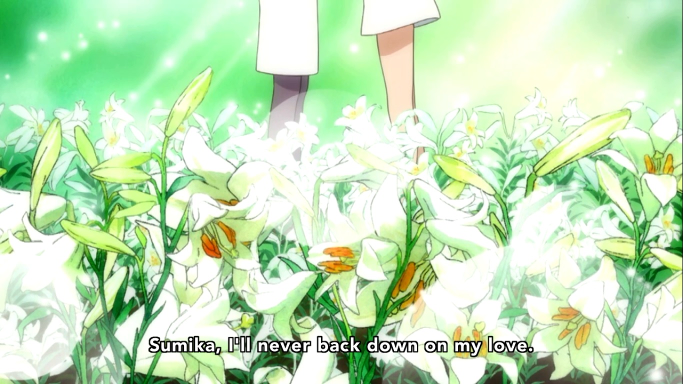 The episode begins with a flashback to when Kureha’s mother was still alive and she seems to be writing the ending to the book she didn’t finish. Spoiler alert: The two broke the mirror, made their promise kiss, and lived happily ever after. Kureha asks her mother what the new story is about and she tells the young child that it’s about her adventures with the friend that she made.