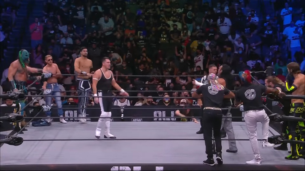 Orange Cassidy, Chuck Taylor, Wheeler Yuta and Jurassic Express Vs. Hardy Family Office – The Buy In Ten Man Tag Match